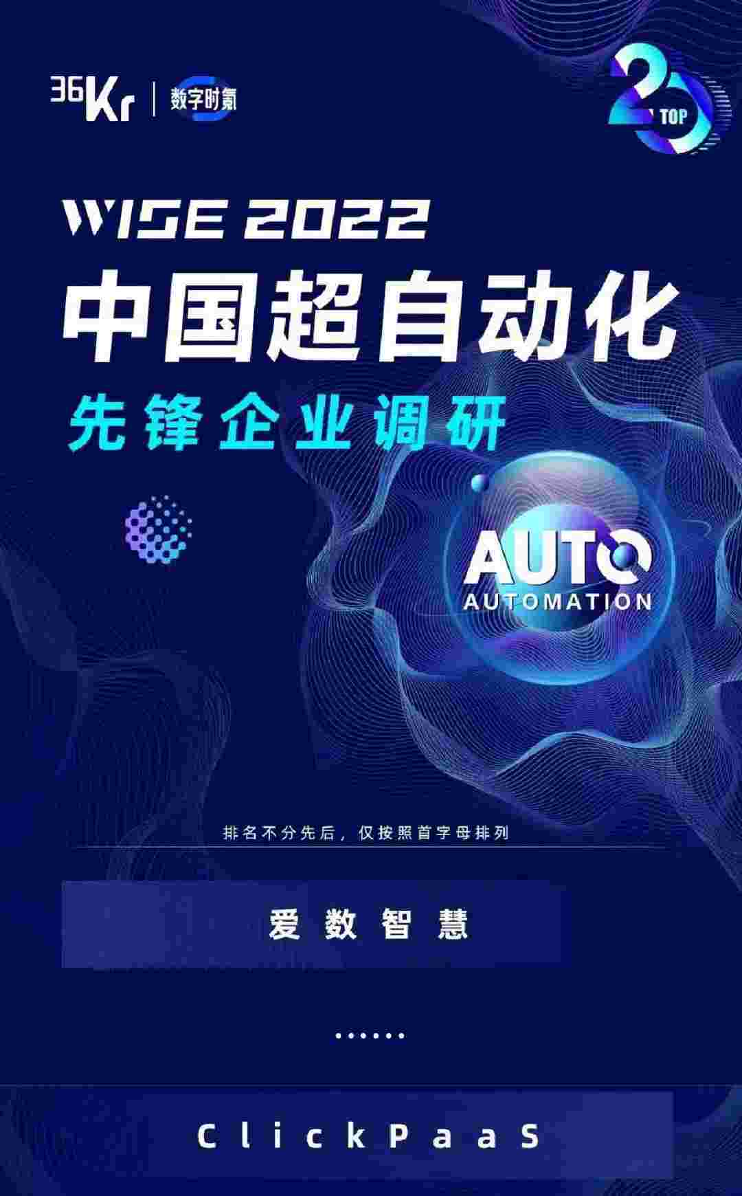 8月10日,,,由36Kr主办的WISE 2022中国超自动化峰会在杭州成功举办。。。NO钱包作为国内低代码PaaS平台的领军企业,,凭借过硬的技术实力和优质的产品能力,,,,在本次峰会中实力入选「2022年中国超自动化先锋企业」20强。。。。